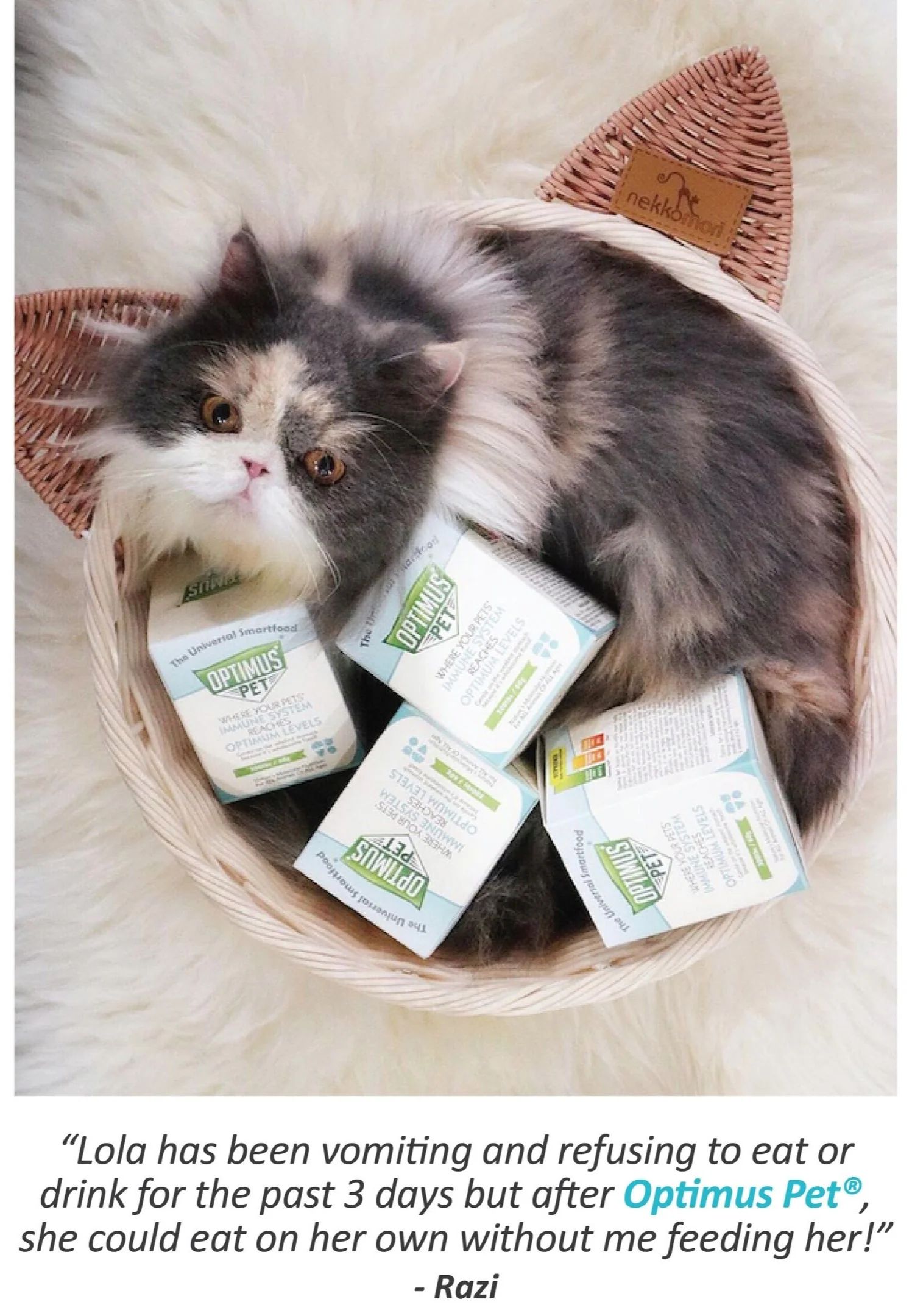 "After consulting and taking Optimus Pet Vials for 3 weeks, Tigger’s cancer tumour stopped spreading and bleeding on the ear stopped."